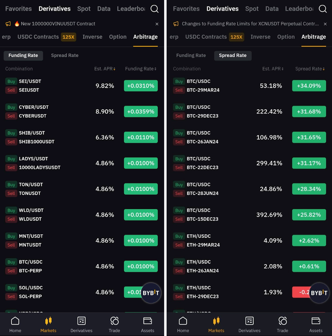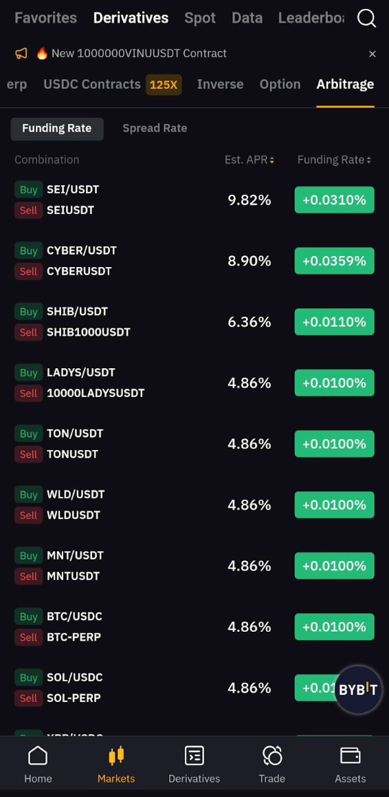 Bybit Arbitrage offers arbitrage opportunities in funding rates and spreads.