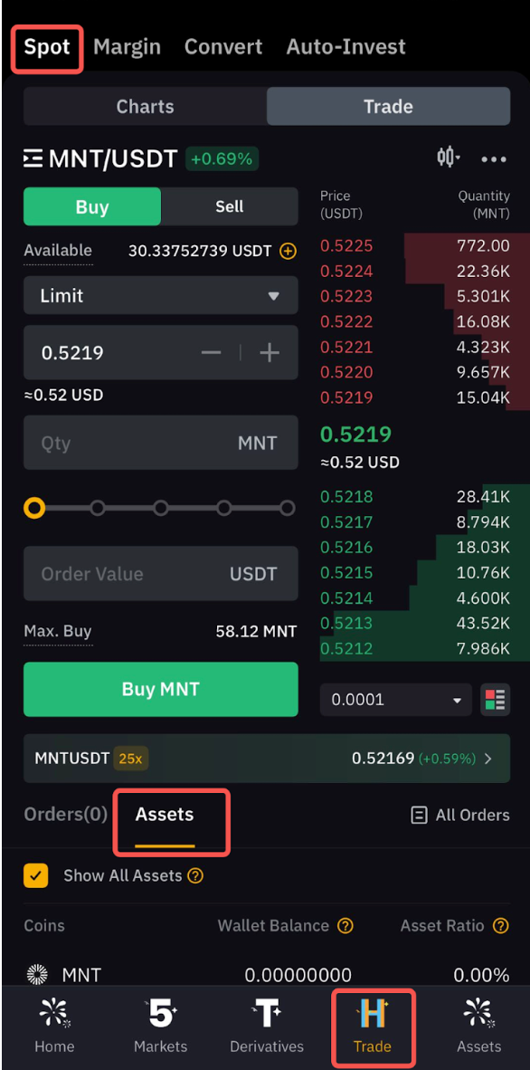 - To view your Spot Assets, you can go to the Spot Trading page → Assets.