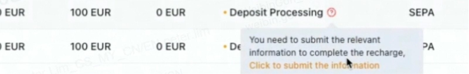 For users who deposit EUR via SEPA, you can Submit an Appeal on the payment details page or via the live chat window for the relevant team to check further.