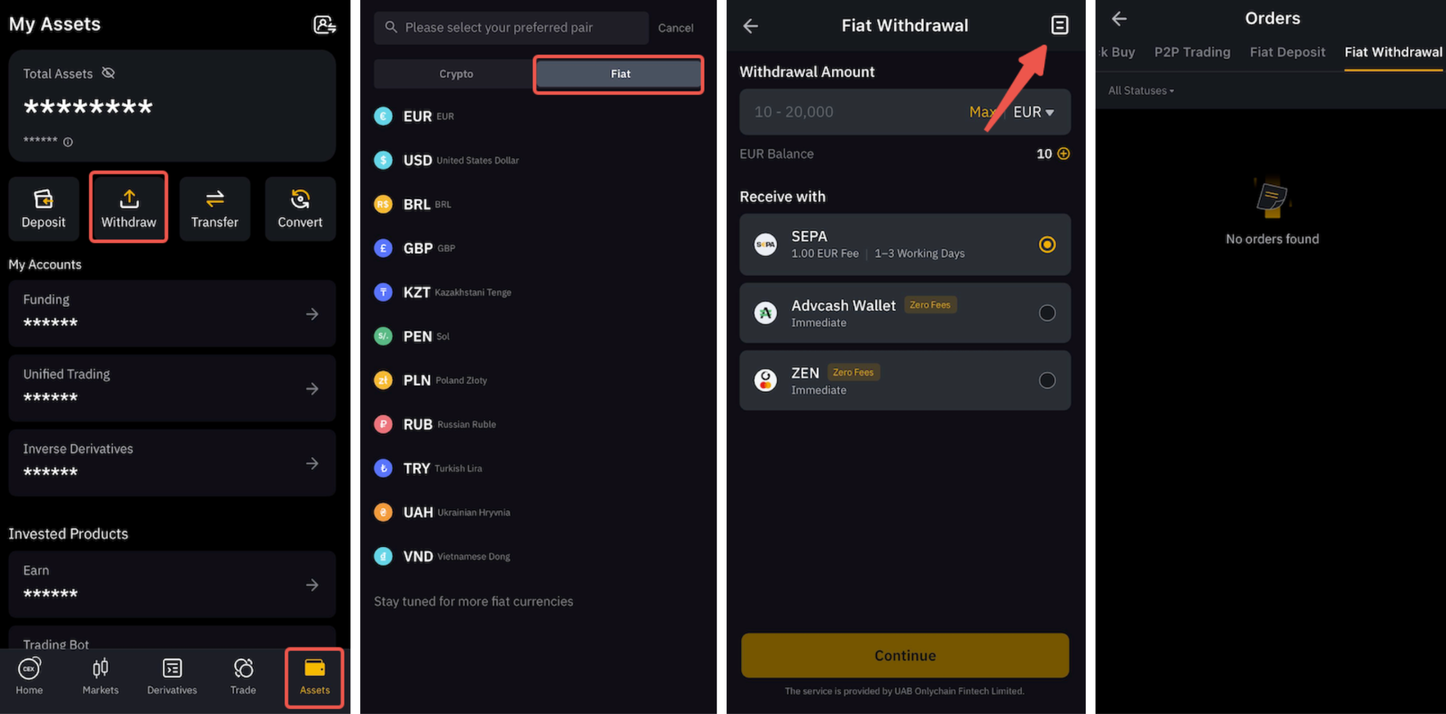 To learn more about how to withdraw fiat currency, please refer to the available articles for each currency here.