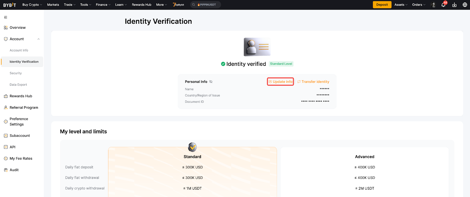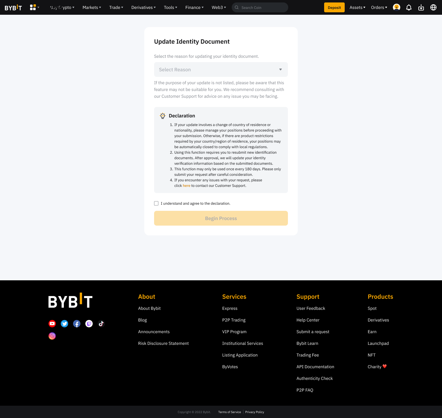 To support document updates due to expiration or address changes, Bybit provides self-update options based on your KYC level, allowing you to update your documents without resetting your existing KYC verification.