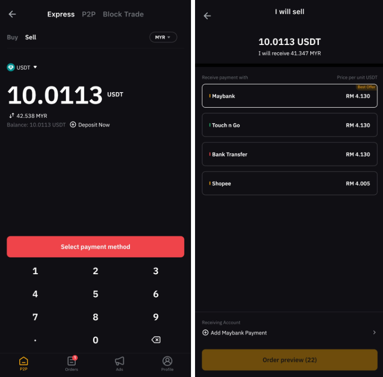 P2P Express is designed to be a fast and efficient peer-to-peer transaction, allowing P2P traders to sell crypto from other traders without intermediaries on the Bybit App. It makes it easy for beginner users to quickly get quotes without the hassle of sorting through numerous ads.