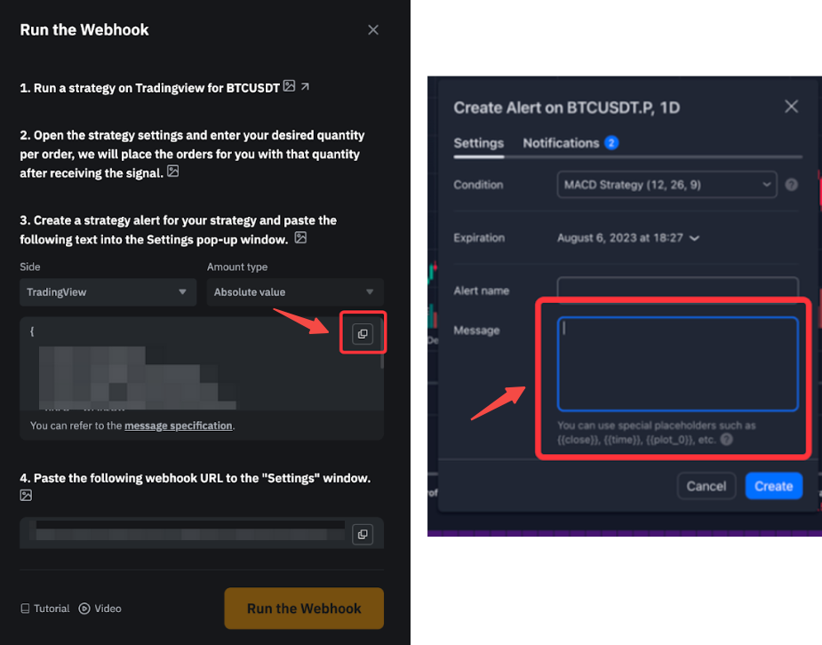— You can copy the message template from the Bybit page and paste it to the message box in the alert settings tab.