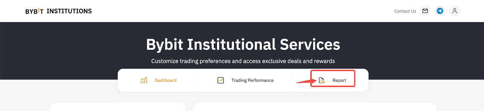 Step 1: Log into your Bybit Institutional Portal account, then click "Report".