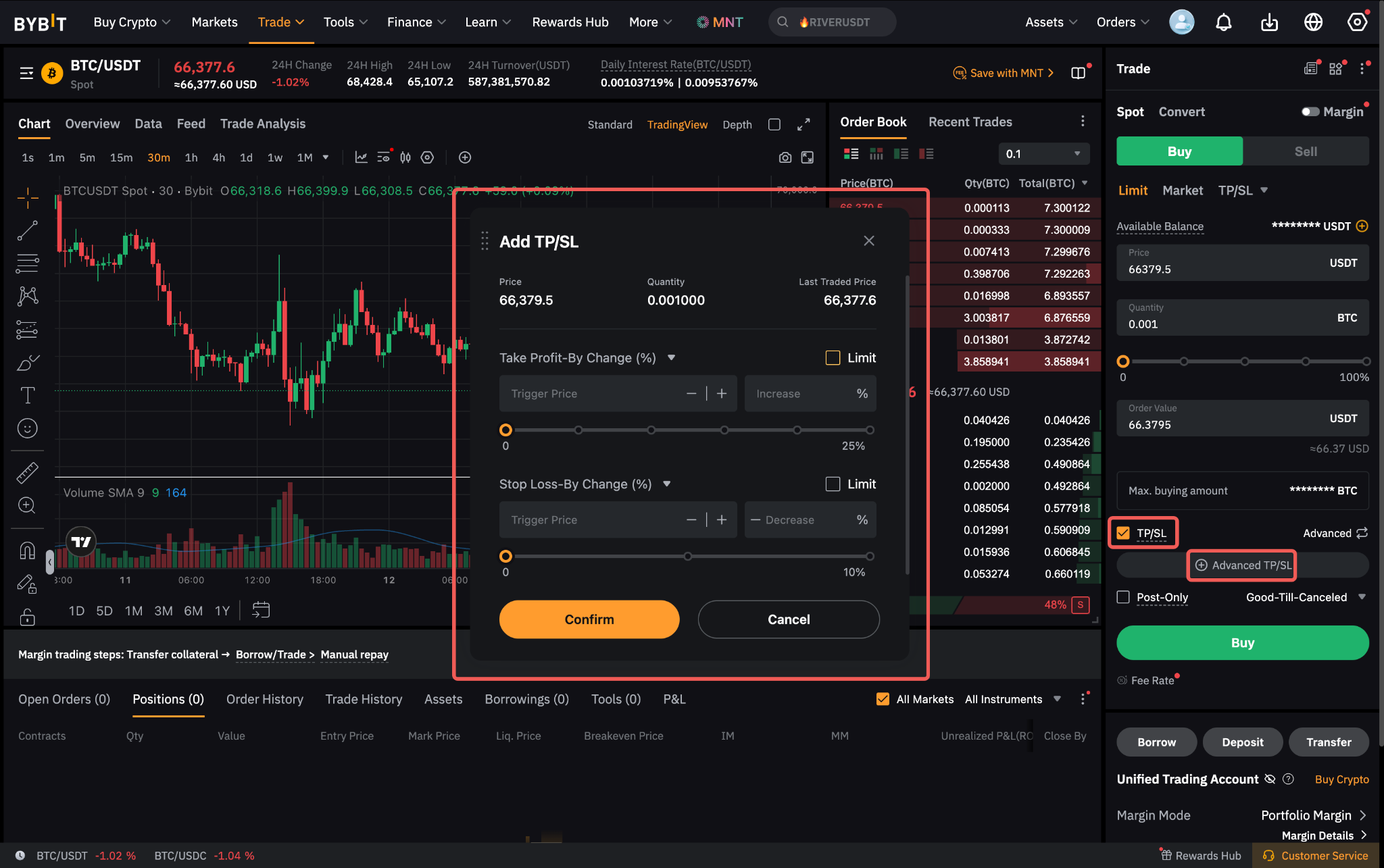 — If the traded amount or value does not meet the minimum order requirement after the Limit order is executed, your TP/SL may fail to be placed or executed upon triggering.