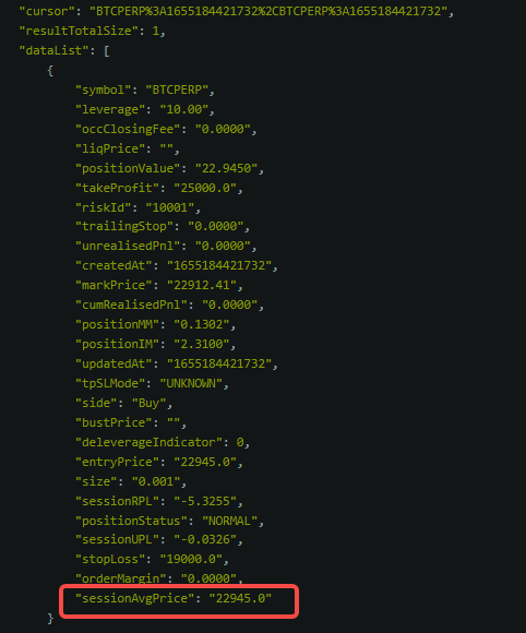 Para el parámetro de respuesta de la API V3 del contrato USDC, consulte sessionAvgPrice para el precio medio de entrada del contrato USDC Perpetual. Una vez que se alcanza el momento de la liquidación, el sessionAvgPrice (precio medio de entrada) se actualizará al precio de marca en el momento de la liquidación. Le recomendamos que utilice la API actualizada aquí