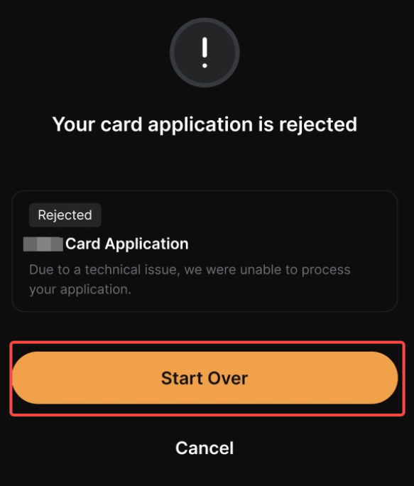 2. Si tu solicitud de tarjeta ha sido rechazada después de su envío, siempre puedes empezar de nuevo con una nueva solicitud.