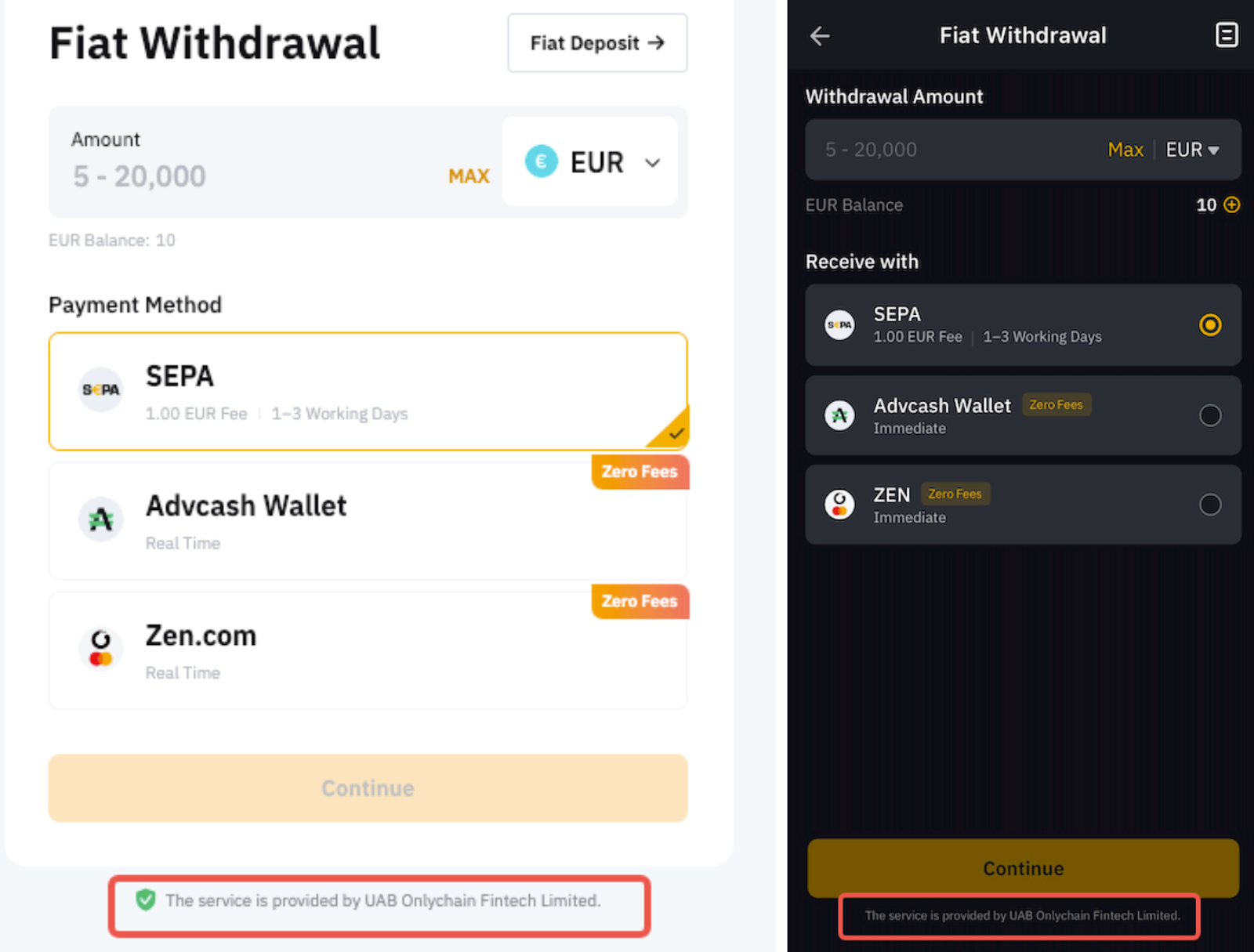 Debido a los requisitos de cumplimiento, es posible que los usuarios que realicen su primer depósito a través de UAB Onlychain Fintech Limited deban proporcionar documentos de identidad adicionales distintos del permiso de conducir.