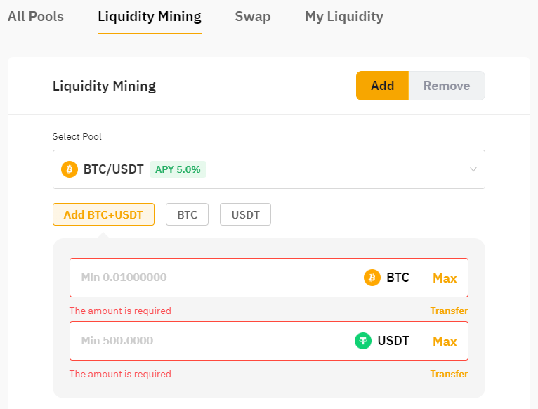 La Minería de liquidez de Bybit permite añadir uno o dos tokens al pool correspondiente. El sistema compensará automáticamente las cantidades de tokens en función de la composición actual del pool.