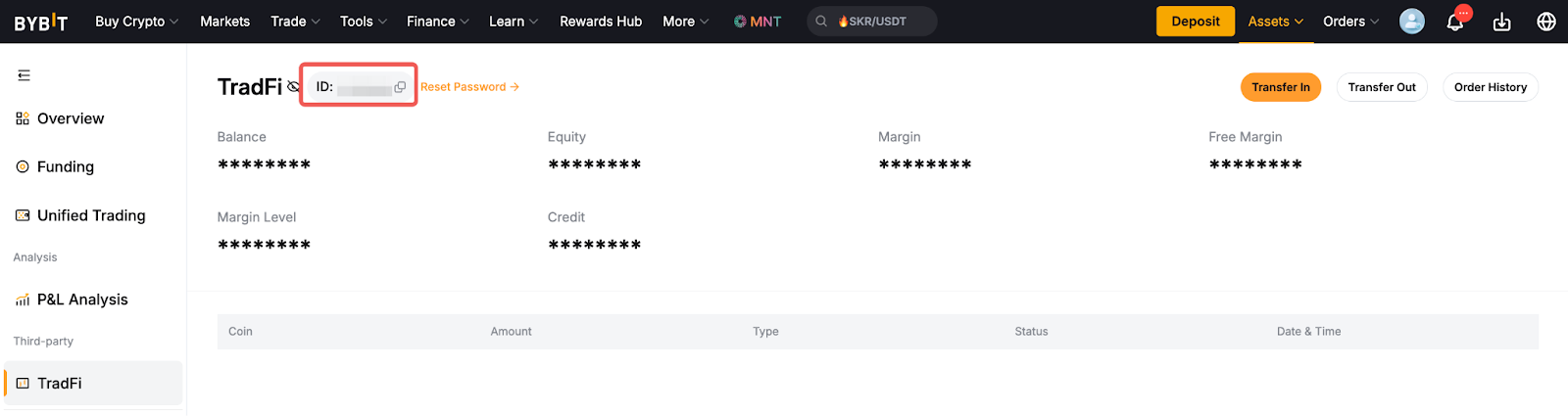 Para un acceso sin interrupciones y una experiencia de trading más cómoda, TradFi ya se ha integrado en su cuenta de Bybit. Sin embargo, aún puede operar a través del terminal de cliente de MetaTrader utilizando su ID de cuenta de MT5. Tras la activación correcta de su cuenta de TradFi, puede consultar los detalles de su ID de inicio de sesión haciendo clic en la sección ID de MT5 en Detalles de la cuenta.