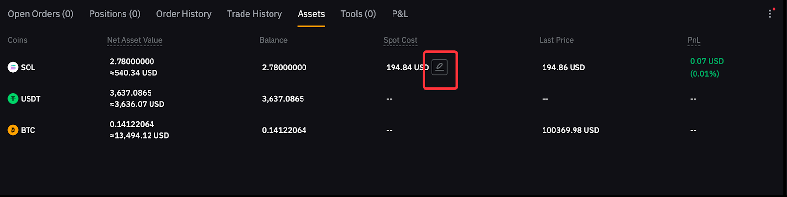 Bybit calcula el coste spot utilizando datos recopilados en nuestra plataforma desde {date} (UTC). Si el coste mostrado no coincide con tu coste real, puedes ajustarlo manualmente.