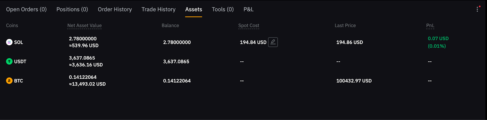 2. El coste spot no se calculará para stablecoins o monedas fiat y aparecerá como "--" en la página de trading.