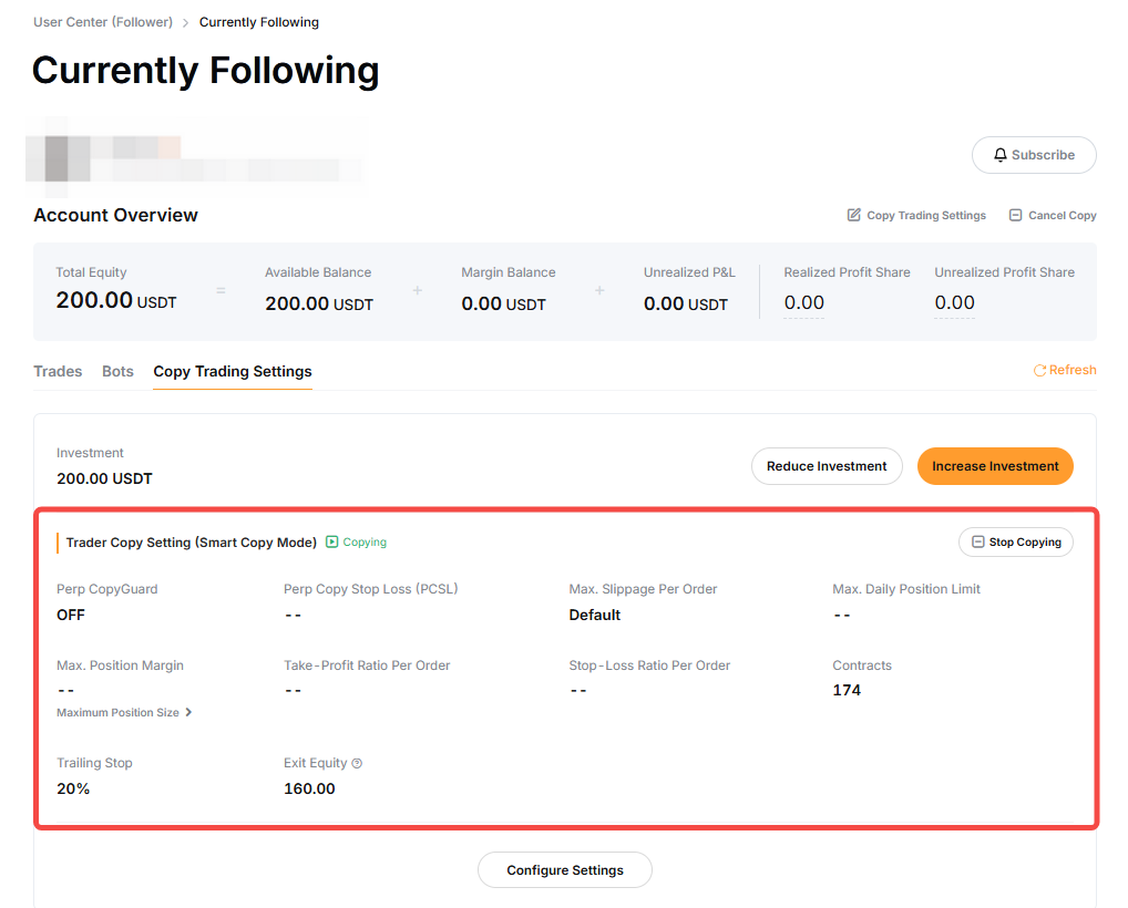 Puedes ajustar los parámetros de tu copy trade siguiendo los pasos que se indican a continuación.