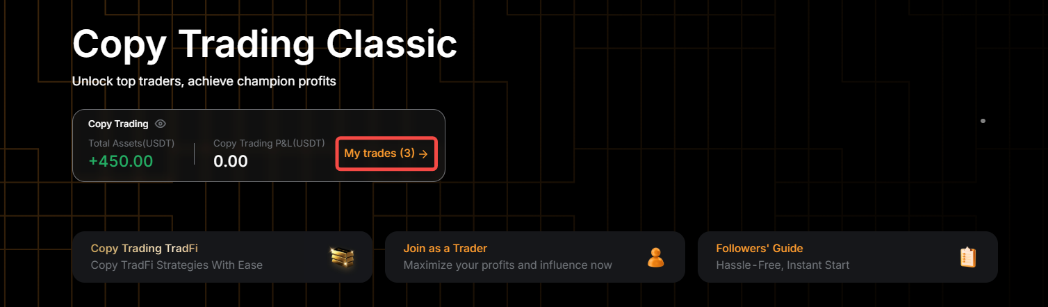 Paso 1: para ver tus posiciones copiados, haz clic en Mis trades en la página de Copy Trading Classic para entrar en el Centro de usuarios (seguidor).
