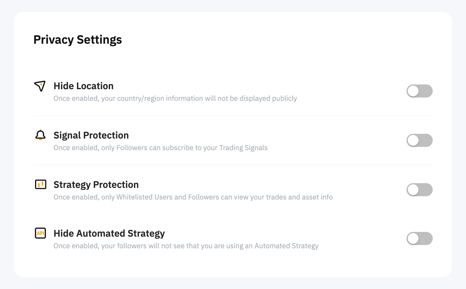En Configuración de privacidad, puede gestionar la visualización de su ubicación, la protección de la señal, la protección de la estrategia u ocultar su estrategia automática al público.