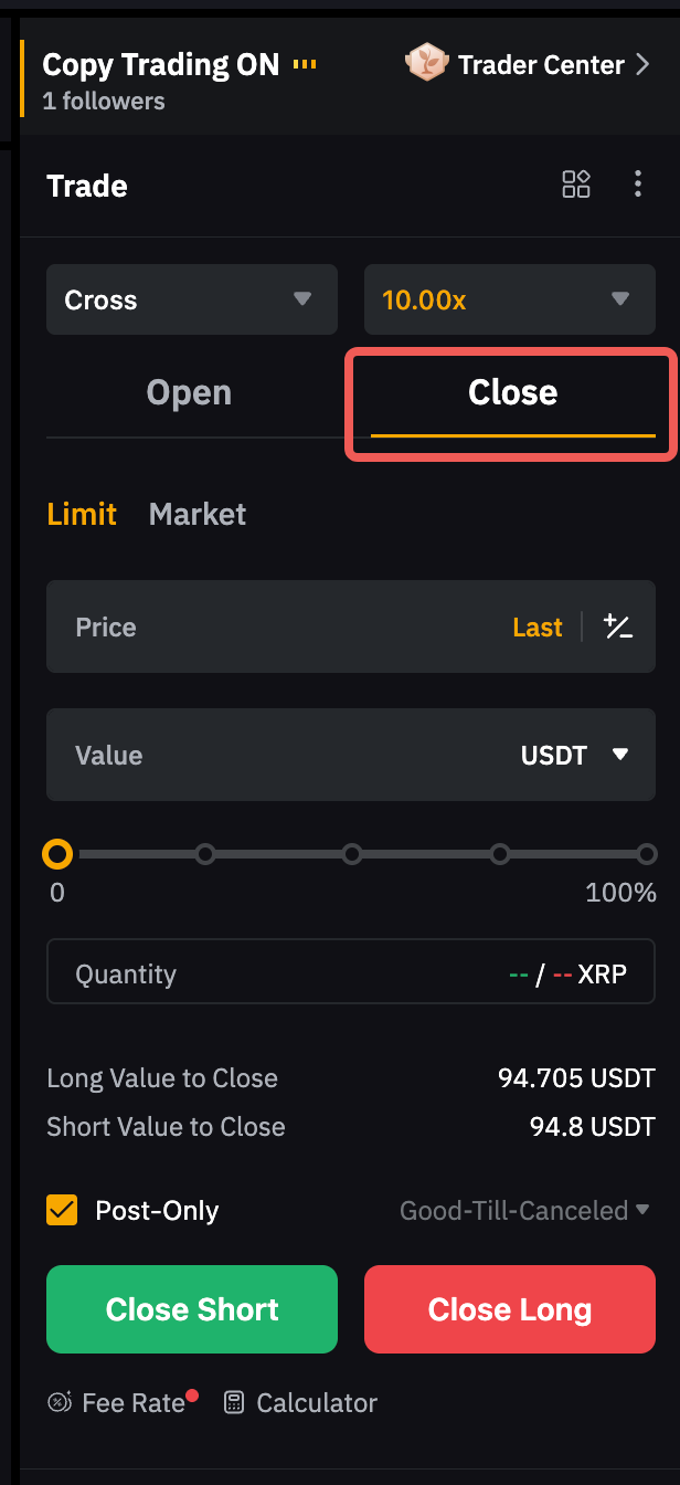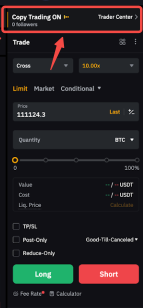 Todas las funciones de realización de órdenes y herramientas de negociación disponibles para la negociación perpetua de USDT son compatibles con los Master Traders. Puede ver el número de seguidores que copian operaciones para el par de trading respectivo por encima de su zona de órdenes. Para ver el par de trading admitido en copy trading, visite aquí.