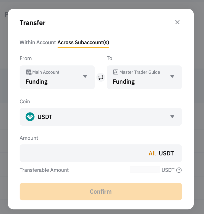 Tendrá que transferir fondos a su cuenta de operaciones unificadas dentro de su subcuenta de operador principal.
