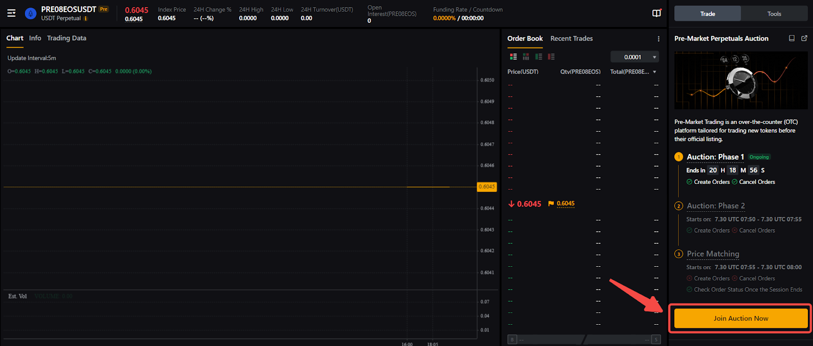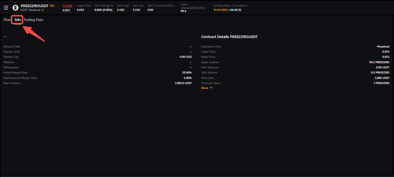 Paso 2: Haga clic en el nombre del contrato perpetuos previo al mercado para comenzar a operar.