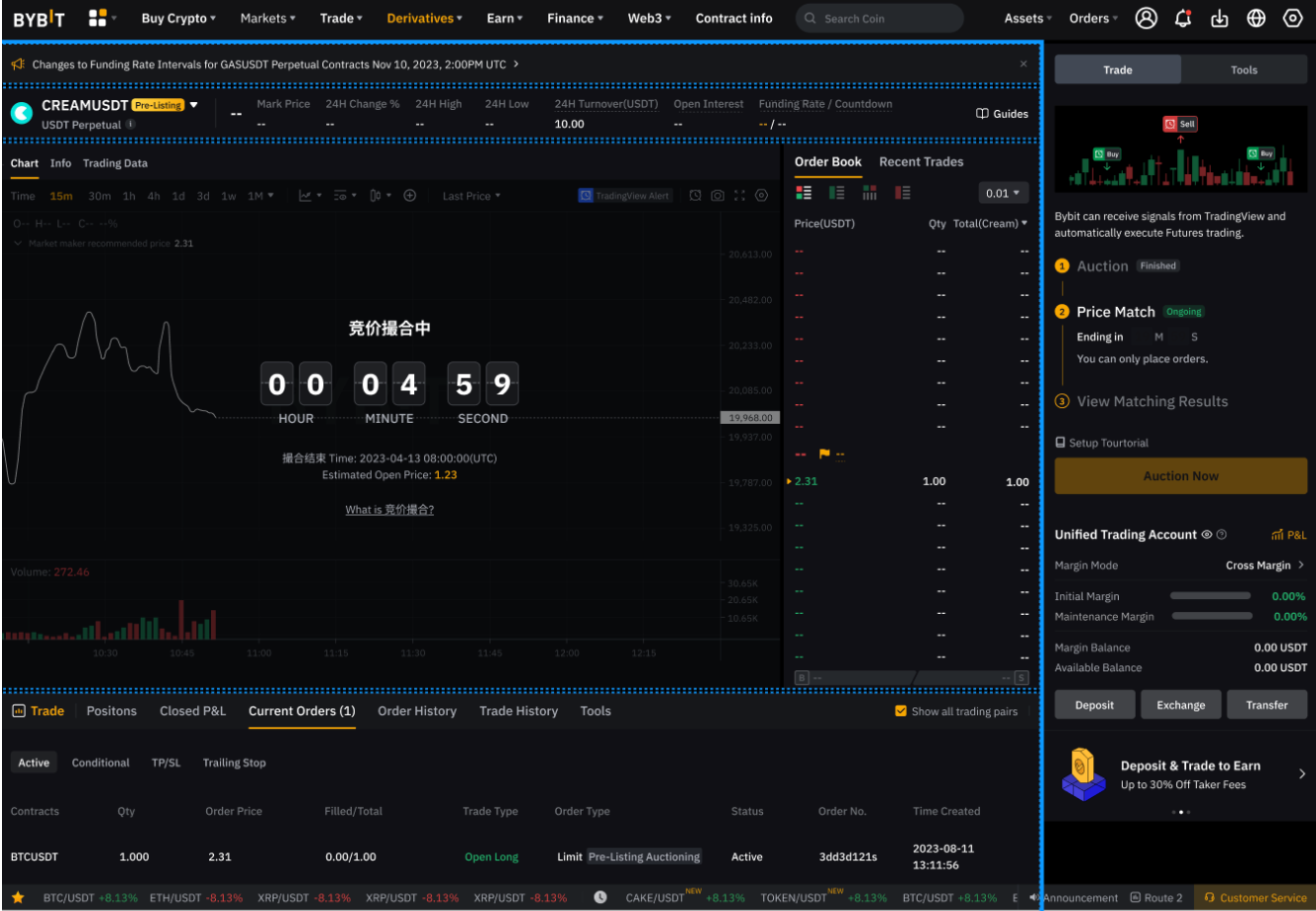 Durante esta fase, la negociación de perpetuos Pre-Market funciona de forma similar a la negociación de contratos de Derivados estándar, siendo la diferencia principal el cálculo del precio del índice. Una vez que el contrato se convierta en un contrato perpetuo oficial, se hará un anuncio.