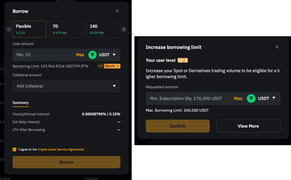 3. Beneficio VIP: Para los usuarios VIP, puedes aumentar el límite de préstamo haciendo clic en Beneficio VIP.
