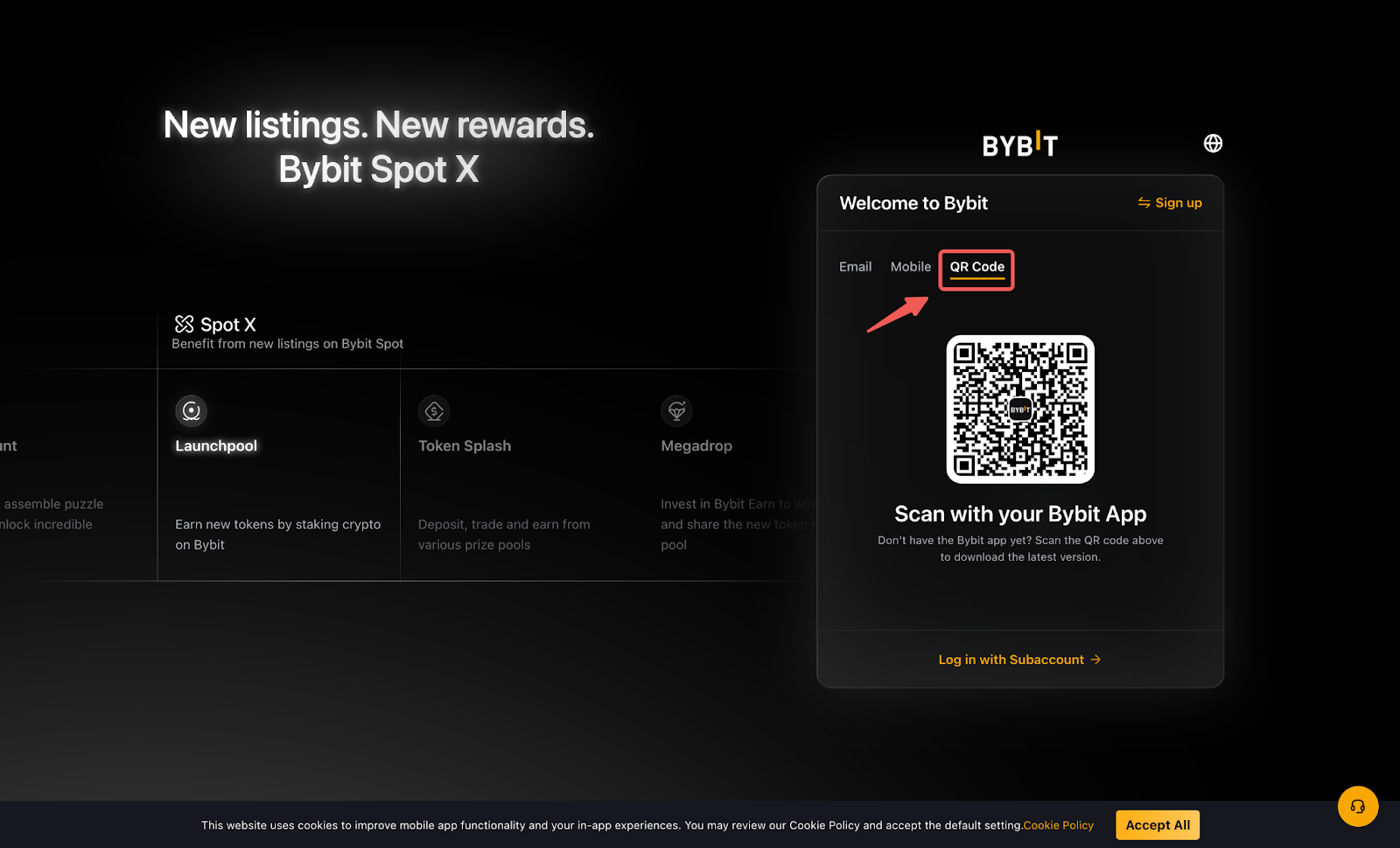 Paso 1: Diríjase a la página de inicio de sesión en el sitio web de Bybit y seleccione la pestaña Código QR para comenzar.