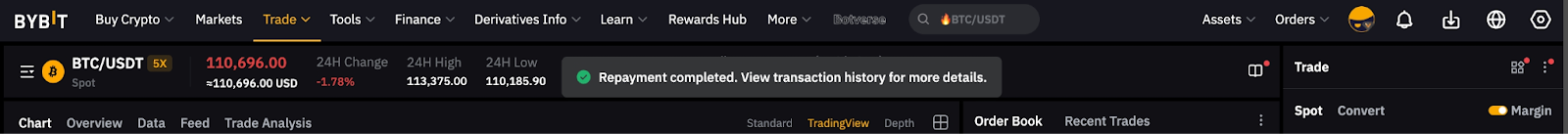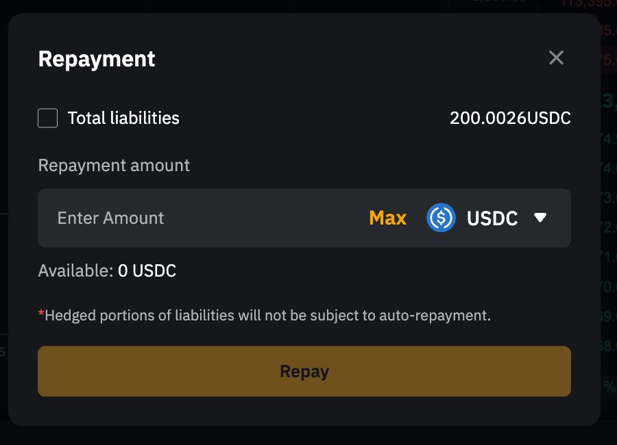 También puede acceder al botón Repagar desde la página de trading de Margen al spot Préstamos.