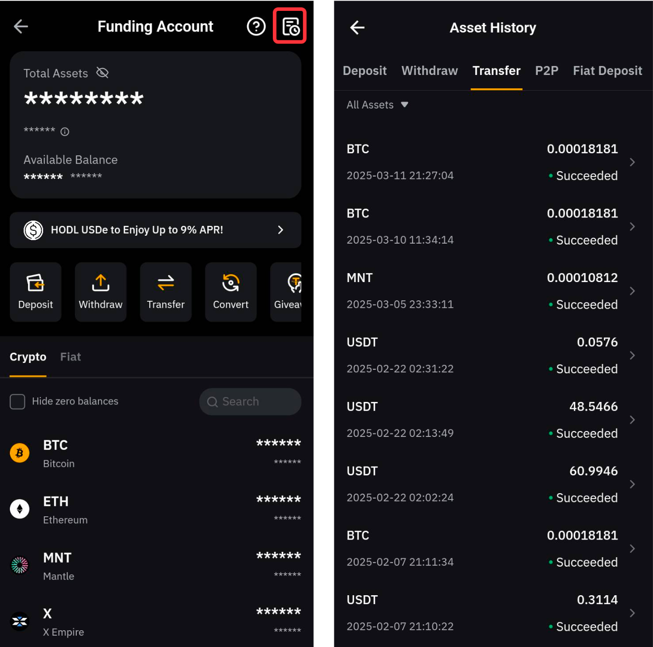 Paso 2: En la página Activos, puedes transferir activos de las dos siguientes maneras: