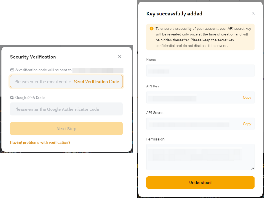 — Por la seguridad de sus activos, su clave secreta de API solo aparecerá una vez al ser creada, y se ocultará después. Por favor, guarde sus claves API de forma segura.