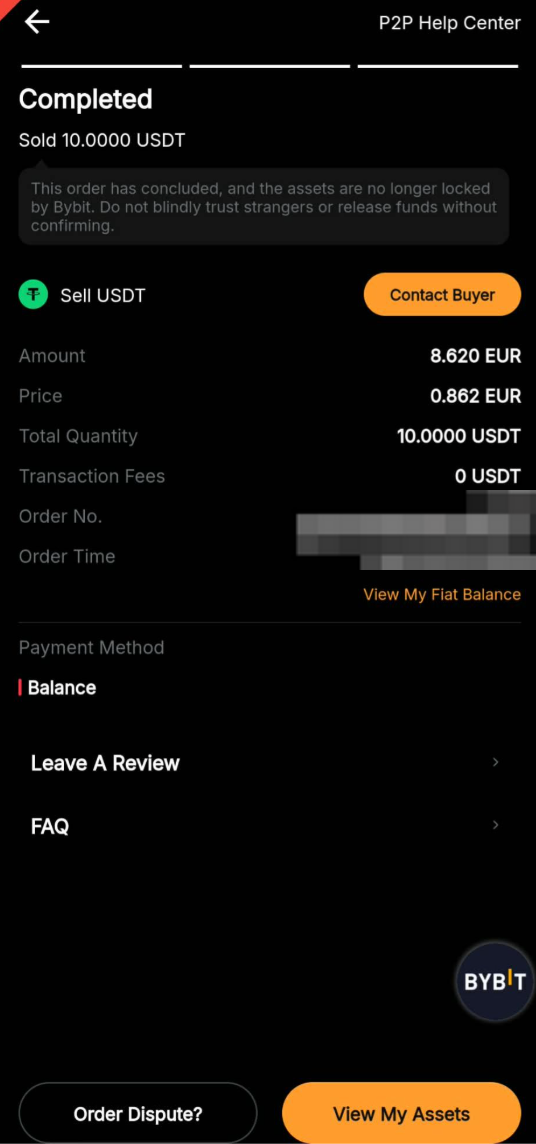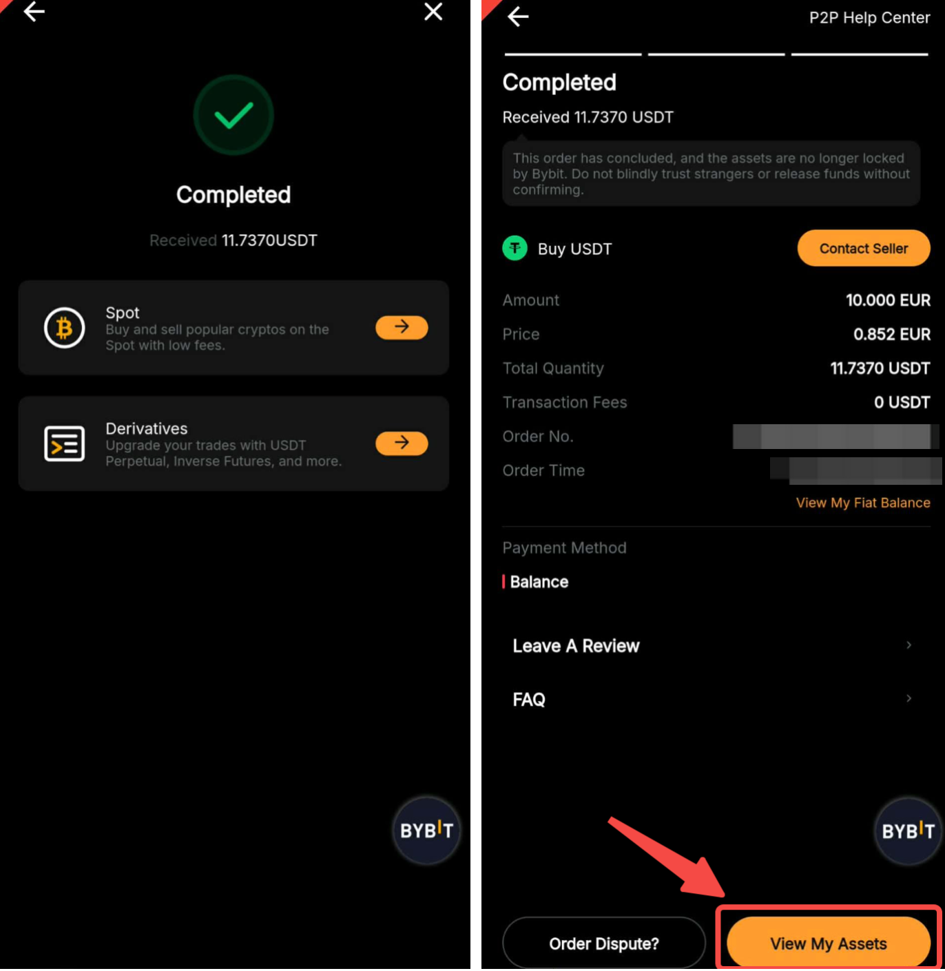 Paso 7: Una vez que el vendedor haya liberado correctamente las monedas compradas, puede hacer clic en Ver mis activos para verlas junto con su historial de transacciones. También puede comprobar el estado de su pedido desde el historial de pedidos P2P.