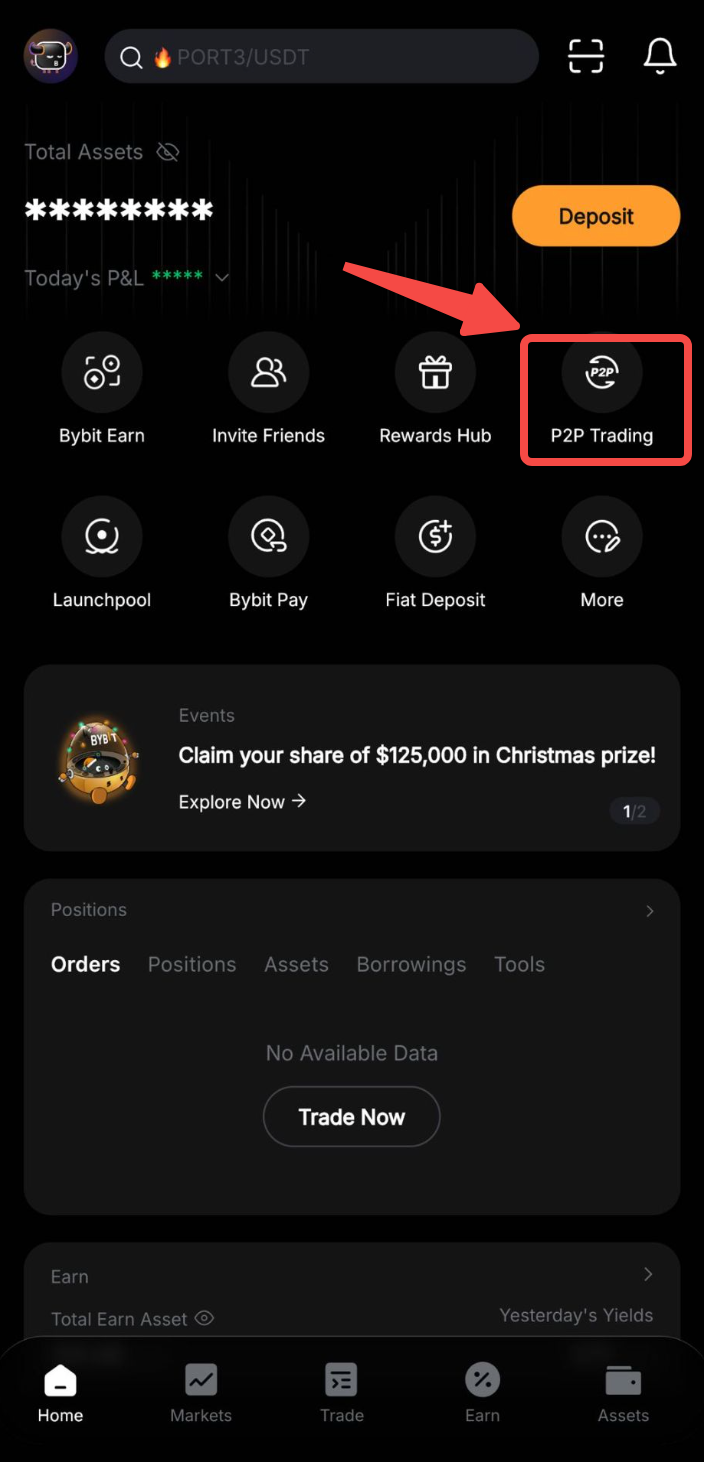 Paso 1: Haga clic en Operaciones P2P en la página de inicio para acceder a la página Operaciones P2P.