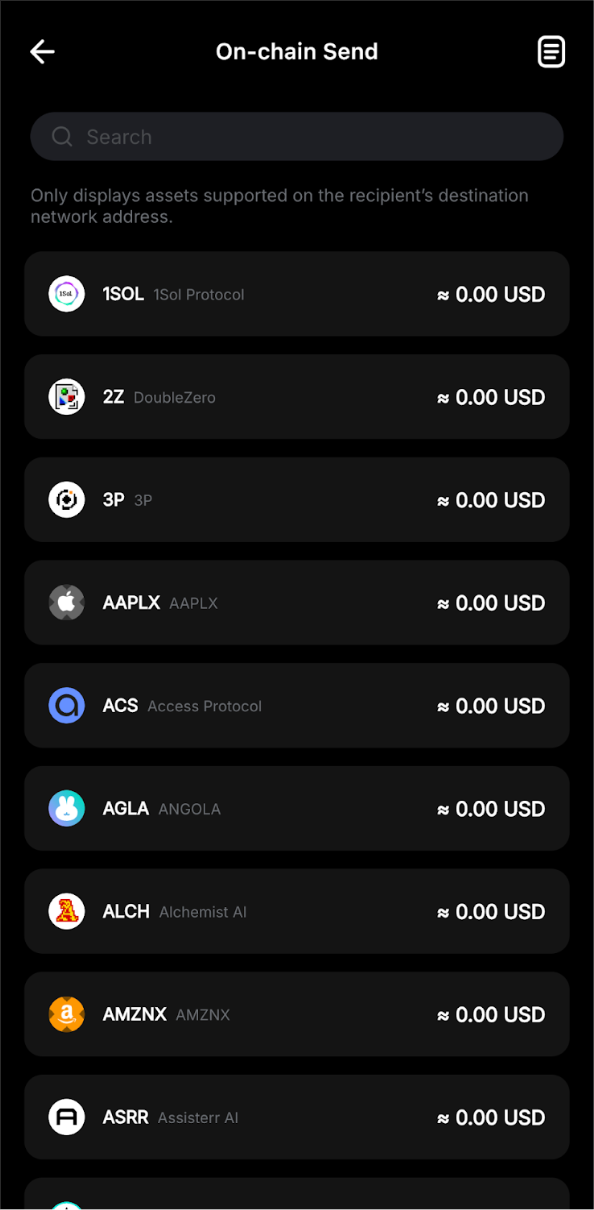 Nota: Solo se mostrarán los activos admitidos en la red de destino del destinatario.