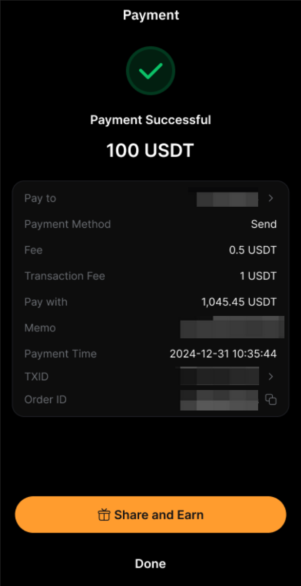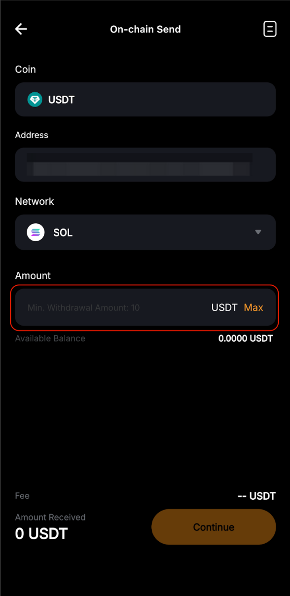 Siga los pasos a continuación para iniciar un envío en cadena en Bybit Pay:
