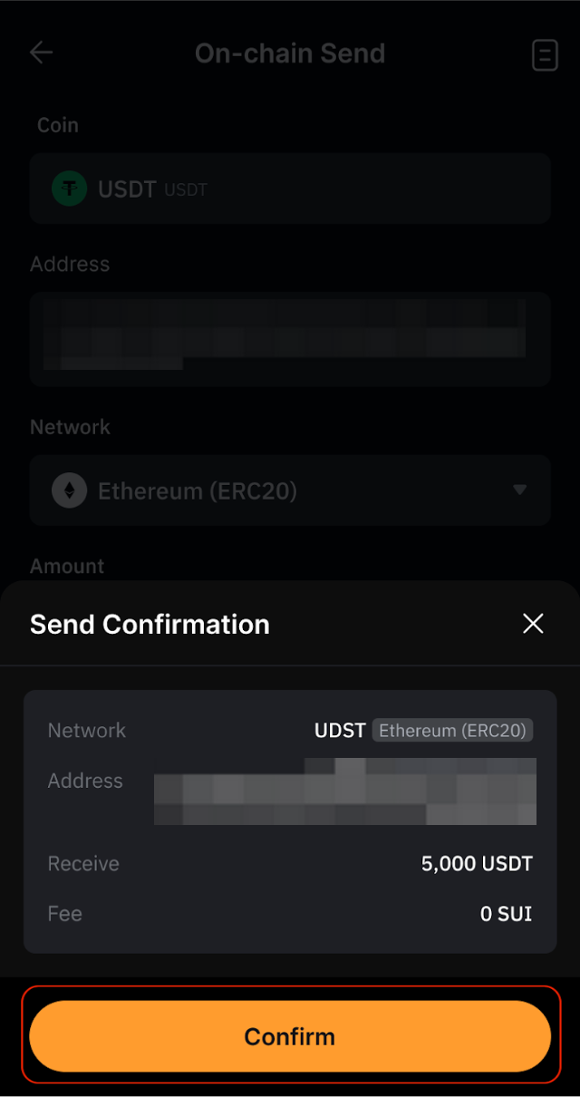 Paso 5: Revise cuidadosamente todos los detalles de la confirmación de envío para asegurarse de que todo sea correcto y, a continuación, toque Confirmar para completar la transacción.