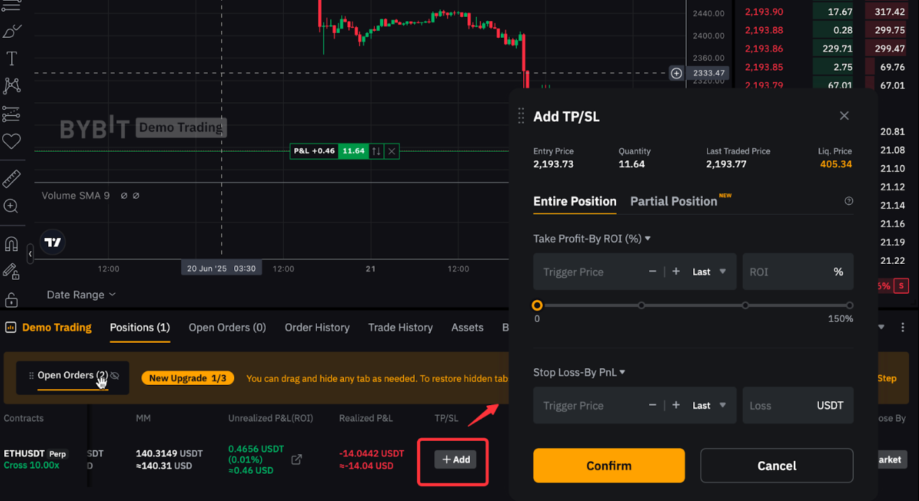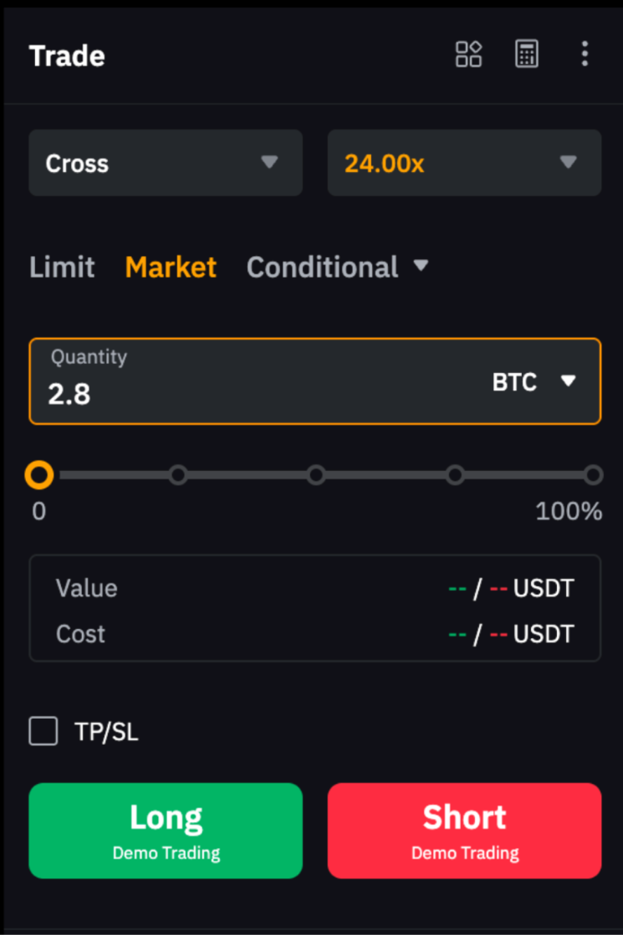 Una orden TP/SL te permite establecer un precio objetivo para activar una orden de cierre para asegurar ganancias o limitar pérdidas. Para obtener más detalles, consulta el artículo Introducción a Take Profit y Stop Loss (contratos perpetuos y de futuros).