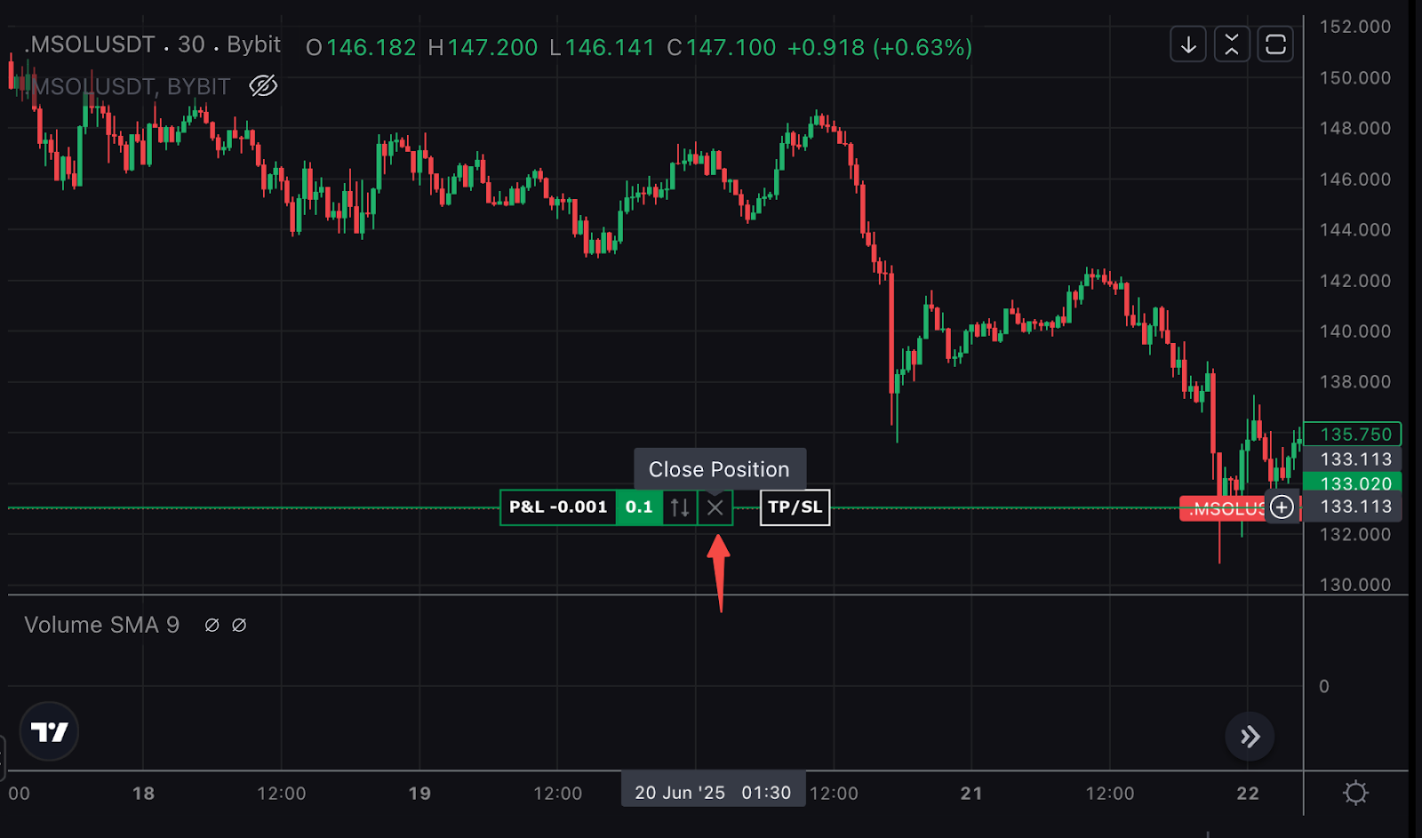 Haz clic en el botón Cierre rápido en el gráfico para salir de toda tu posición al precio de mercado con un solo clic.
