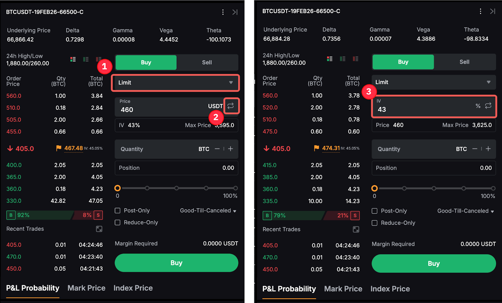 需要注意的是,如果根据 IV 下单,则您的订单价格将随着标的资产价格和期权到期时间的变化而发生改变。