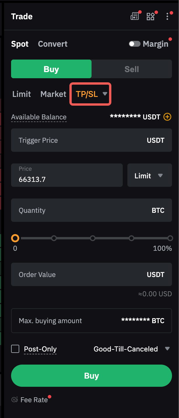 — Para la orden de compra TP/SL vinculada a tu orden de venta con límite en spot, el precio de activación TP debe ser inferior al precio de tu orden límite, mientras que el precio de activación SL debe ser superior al precio de tu orden límite.