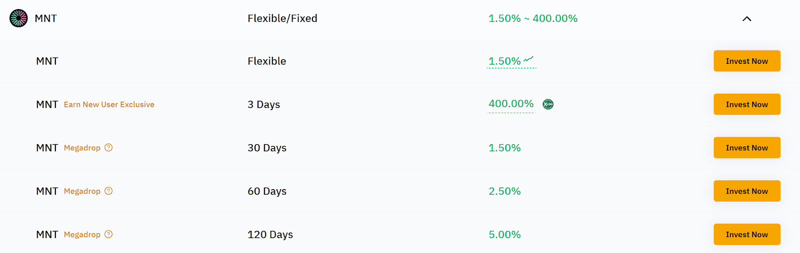 Mantén MNT para participar en Launchpool, Launchpad, Megadrop y Token Splash para obtener acceso temprano a nuevos tokens y mayores asignaciones.