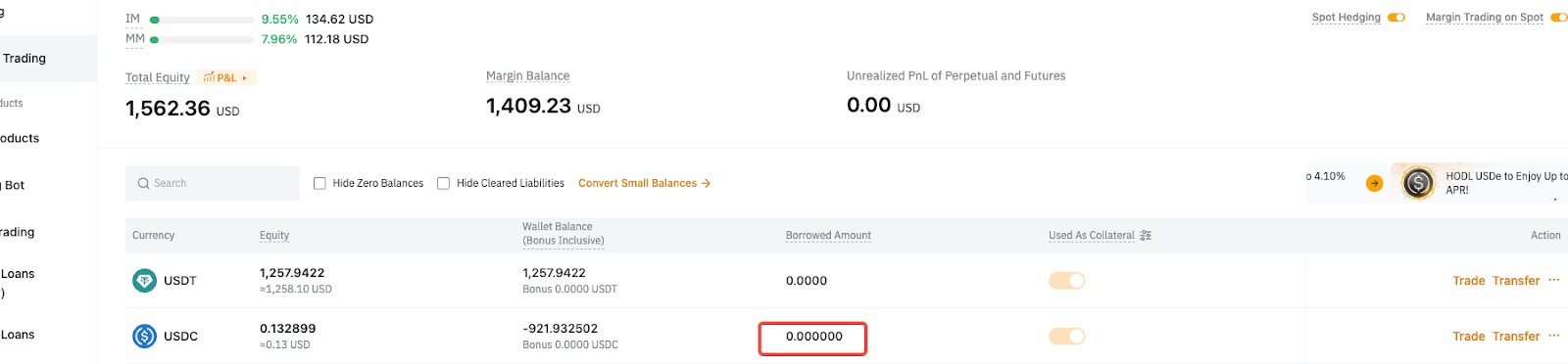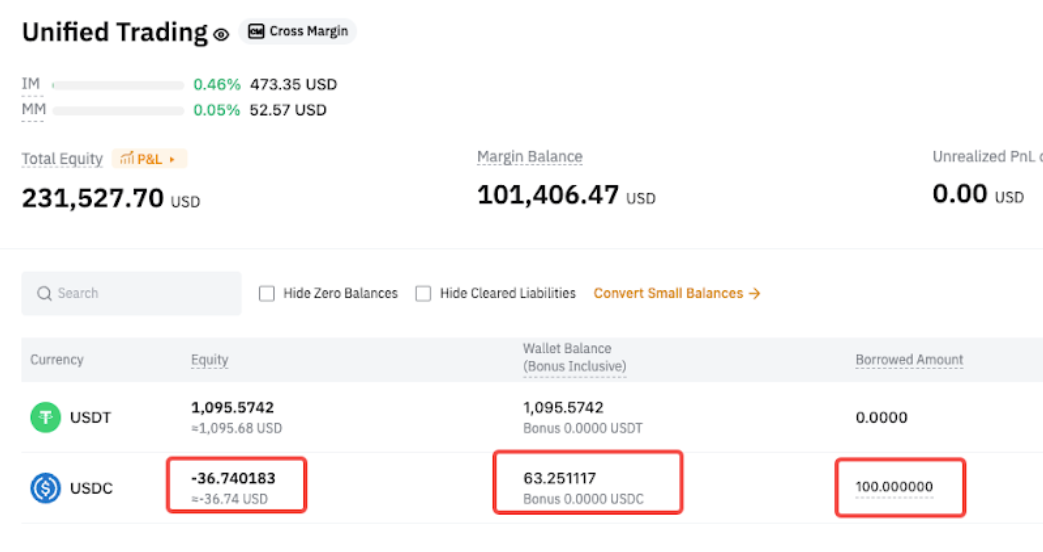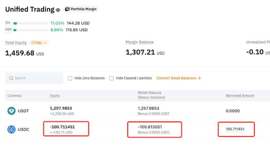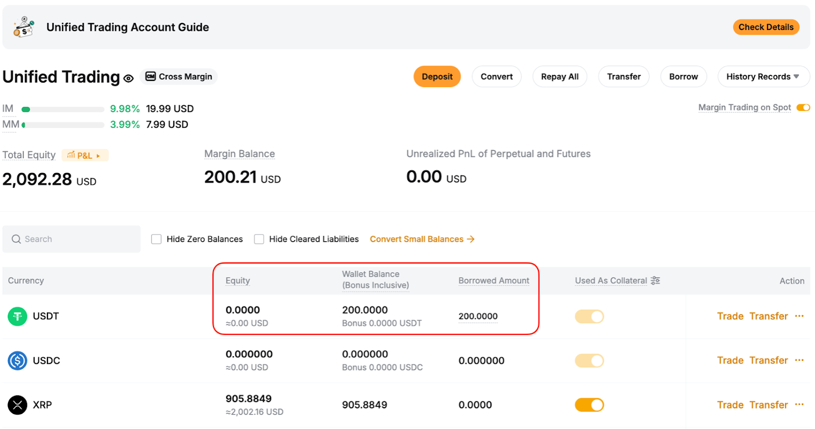 Después de pedir prestado 200 USDT: