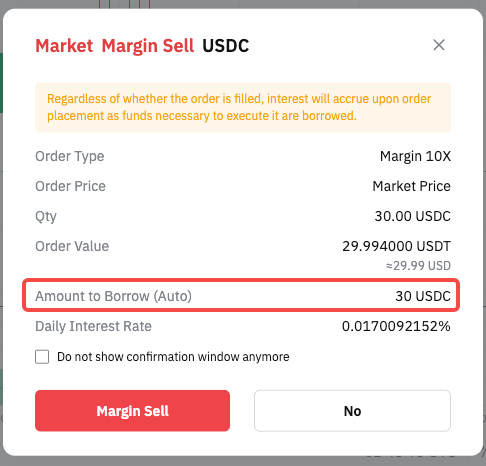 Realiza un pedido de margen puntual que se rellena inmediatamente. El sistema toma prestado automáticamente la cantidad requerida.