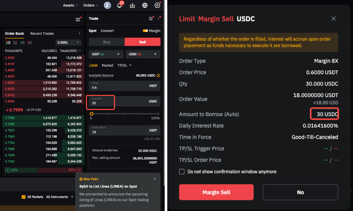 Negociación de margen al contado: préstamo automático de orden límite