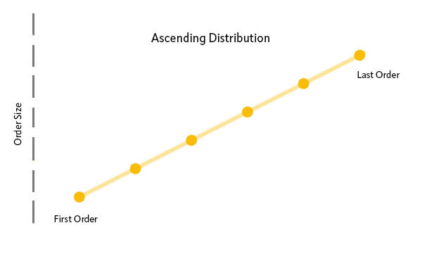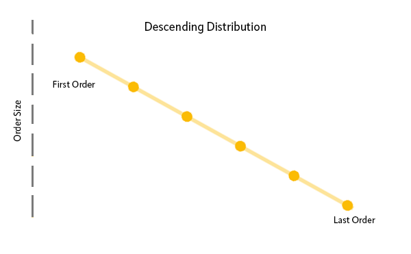 1. La distribución de Disminución establece las órdenes y el precio en orden descendente.