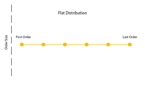 1. La distribución plana o división uniforme divide uniformemente las órdenes y los precios entre el recuento de órdenes.