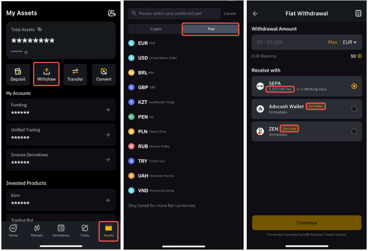 To learn more about how to withdraw fiat currency, please refer to the available articles for each currency here.