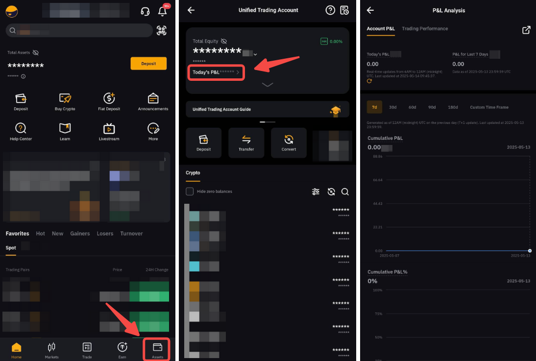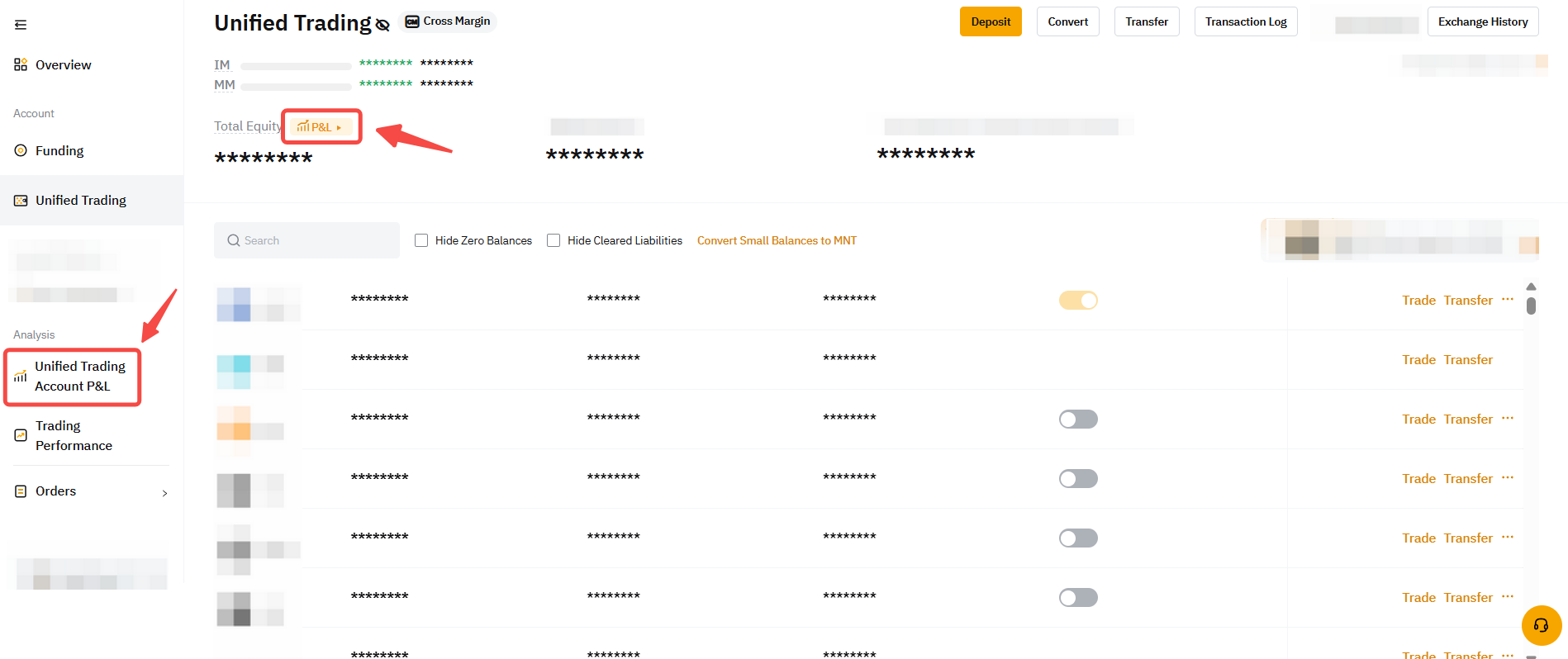 На веб–сайте перейдите на страницу активов Единого торгового аккаунта и нажмите на страницу P&L на Едином торговом аккаунте.