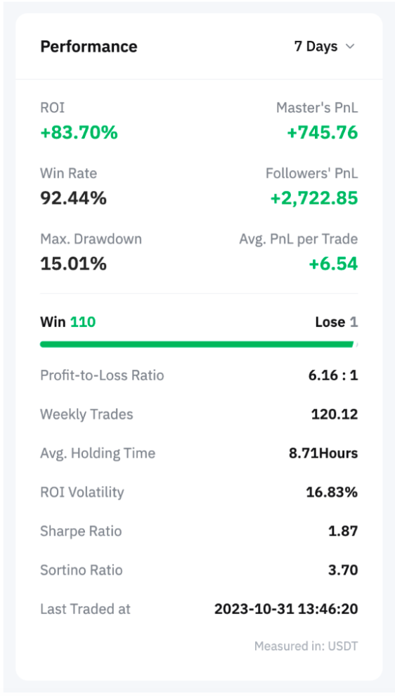 Загальна сума прибутку, отримана від копіювання угод цього майстер-трейдера / сукупна маржа, необхідна для копіювання цих угод. | 00:00 UTC наступного дня |