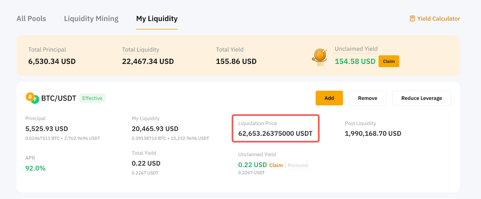 對於流動性供應商而言,產品計劃一旦啟動,相當於每個訂單成功提交後約五分鐘後,就會產生實際強平價格。您可前往我的流動性查看強平價格。